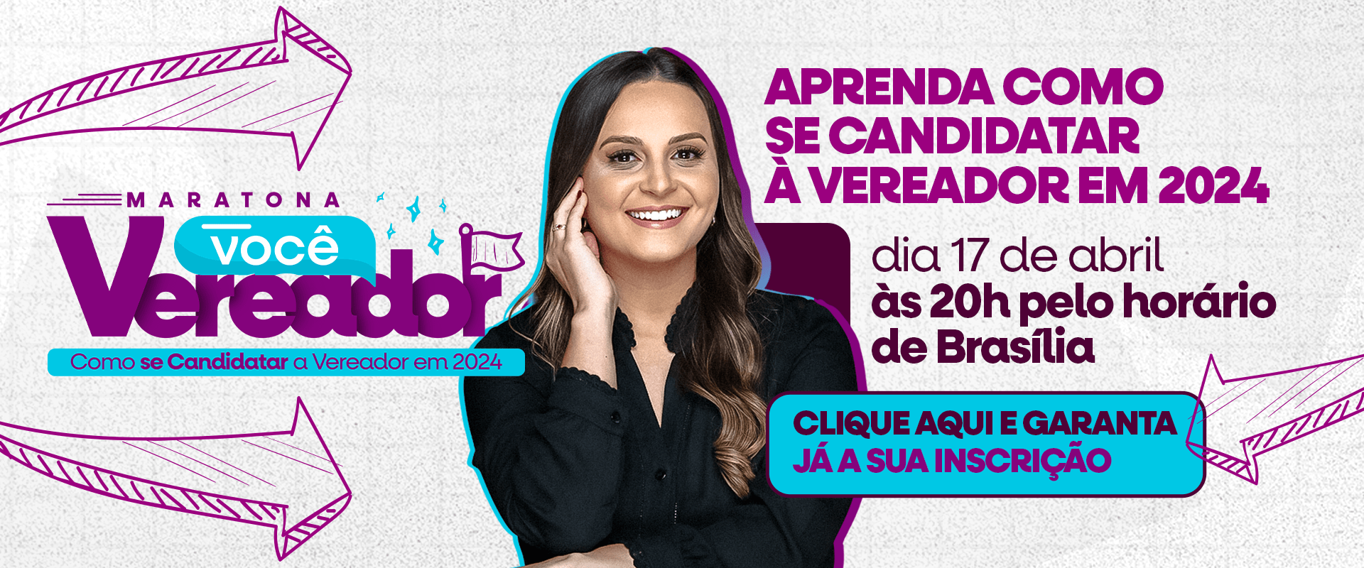 Para saber muito mais sobre como ser eleito(a) vereador(a) em 2024, você precisa participar da Maratona Você Vereador, um evento online e GRATUITO que ia acontecer no dia 17 de abril às 20h (horário de Brasília).